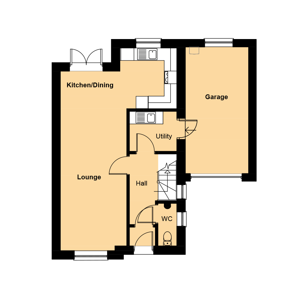 Energy efficient ‘Secure by Design’ standard.  Low maintenance thermally efficient double glazed uPVC casement windows and patio doors, finished in a contemporary grey.  Stylish composite or uPVC glazed thermally efficient front door. Garage doors, where applicable, are remotely operated sectional doors finished in a contemporary grey powder coating.